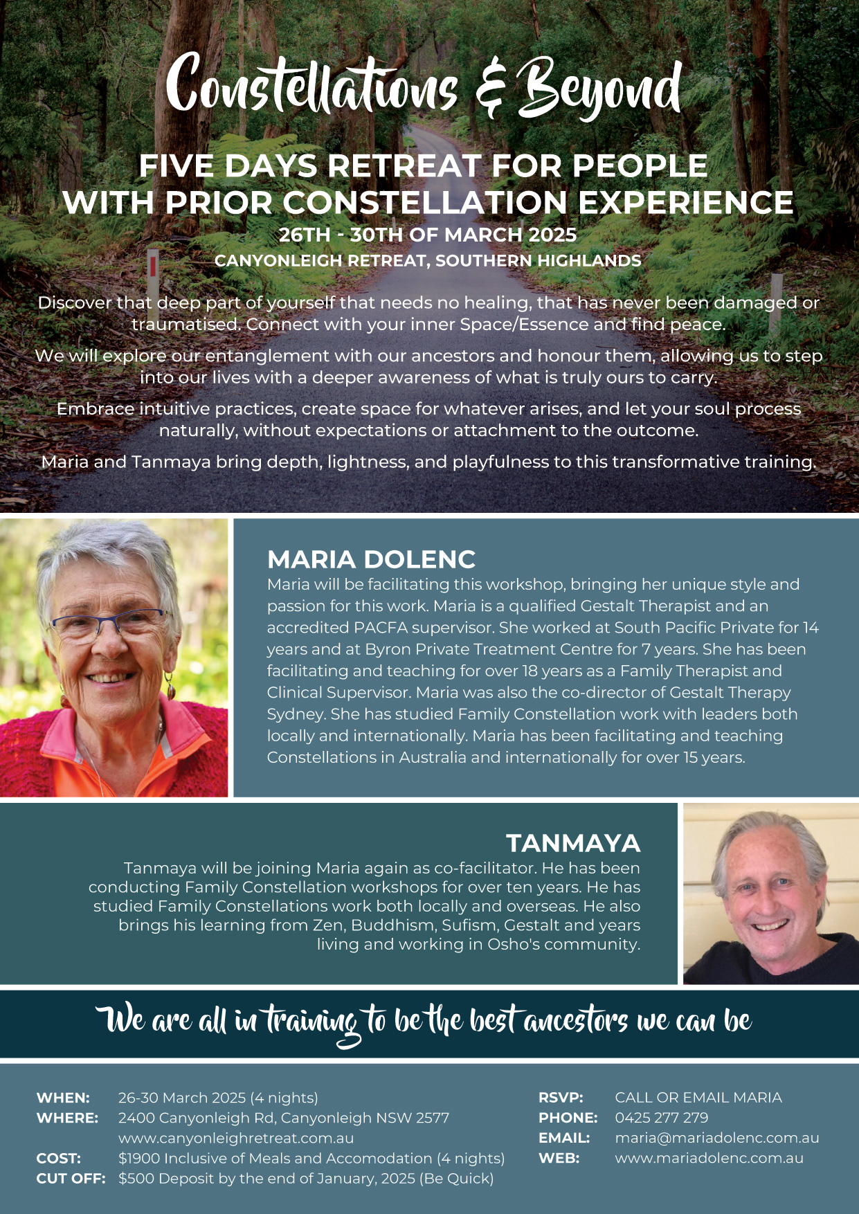 I now devote my time mainly to what I love doing, which is Constellations work.